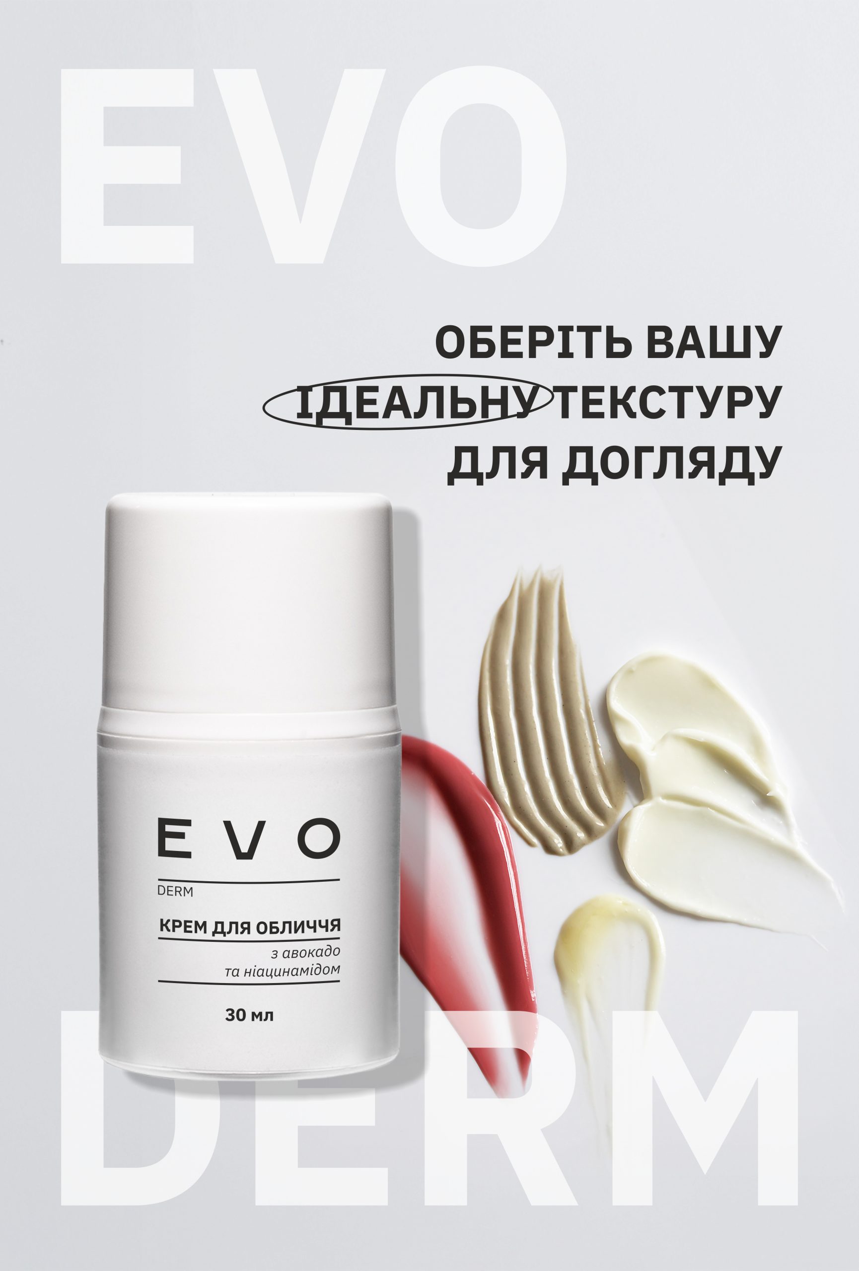 Ми віримо, що кожна жінка та чоловік заслуговує на найкращий догляд. Саме тому ми зосереджені на створенні продукції високої якості. У своїй діяльності ми керуємося принципами екологічної відповідальності, тому засоби EVO derm не тестуються на тваринах, а усі компоненти є виключно рослинного походження. Відкрийте для себе світ EVO derm, закохайтеся у кожен із засобів, текстуру, відчуття на шкірі й, звісно ж, дію та результат.
